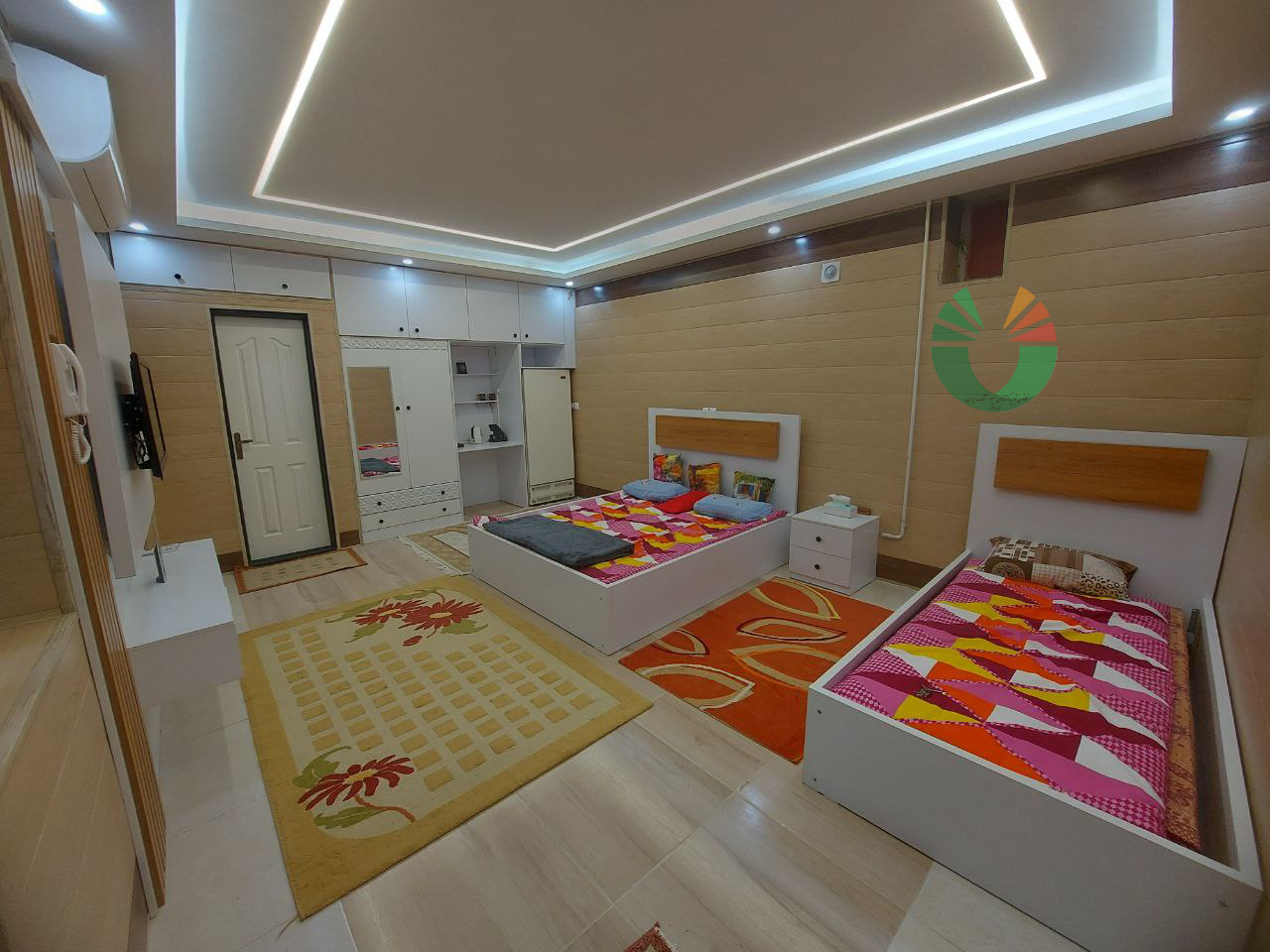 فضای داخل اقامتگاه کاملا مدرن و جدید احداث شده و نوساز میباشد یک سرویس فرنگی و حمام داخل اقامتگاه یک سرویس بهداشتی ایرانی و حمام داخل حیاط میباشد اقامتگاه بصورت سوئیت بدون امکانات پخت و پز و آشپزخانه و دارای حیاط و فضای باز مبله شده میباشد .